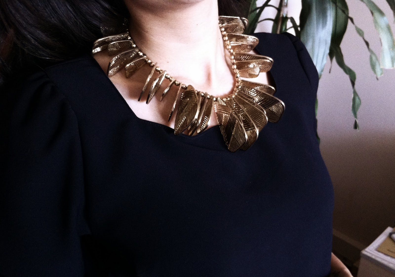 To avoid any boring one color ensemble I used one of my biggest necklaces to make a statement.