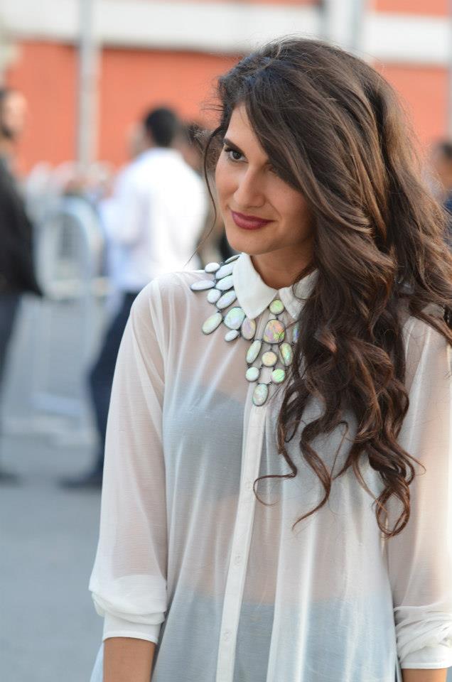 7. Bu bugüne kadar gördüğüm en güzel statement necklace olabilir 🙂 bunda senin kolyeyi bu kadar çarpıcı bir şekilde kombinlemenin payı çok büyük tatlım. Sheer gömlek içine siyah, üstüne sedefli kolyenin pastel ışıltısı kasmadan nasıl şık olunabileceğinin en güzel kanıtı adeta…