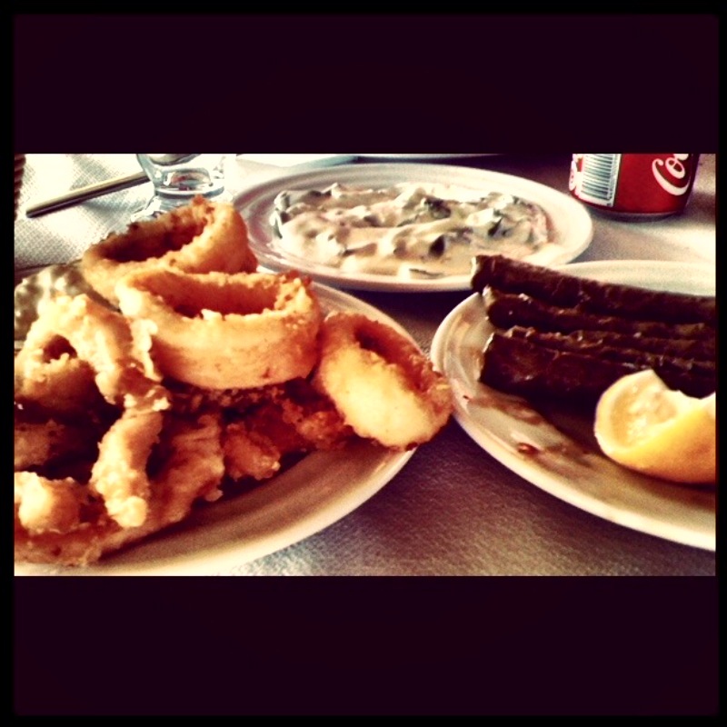 ♥ Ayazma plajının hemen bitiminde Vahit’in Yeri‘nde mezeler, zeytinyağlılar ve kalamarların tadına doyduk.